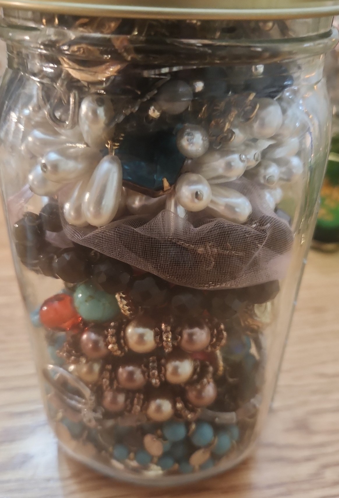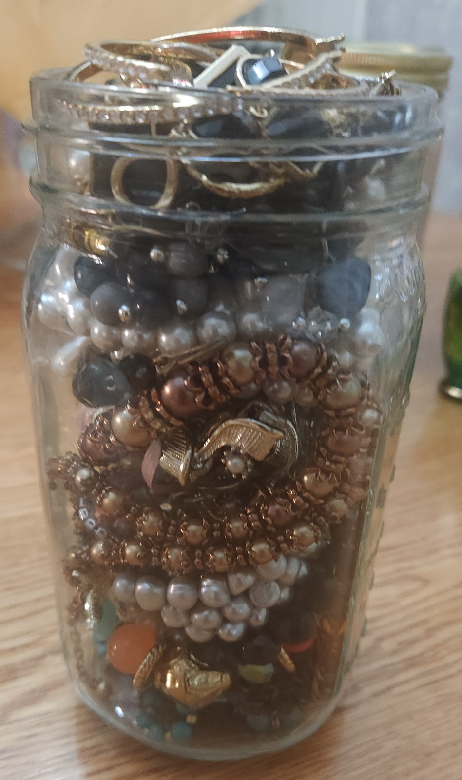 A full quart jar filled with many rare, collectible pieces. Semi precious stones, sterling silver and all wearable pieces , no junk. These are high quality jewelry pieces and I guarantee you will love your jar! Everything you see is what you will get