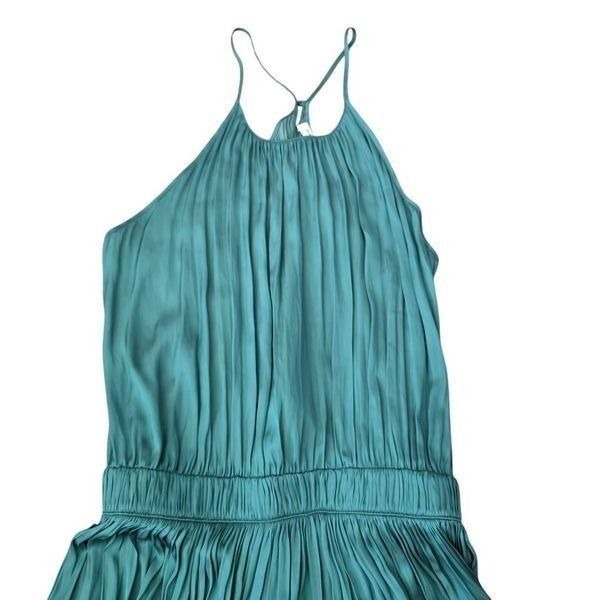 Halston, Modern, Pleated, Fabric, Polyester Blend, Sleeveless, Spaghetti Strap, Comfortable, Formal, Party, Fall, Summer, Spring, Halston Heritage Blouson Dress Womens XL Green Ruched Flounce Sleeveless Preppy.