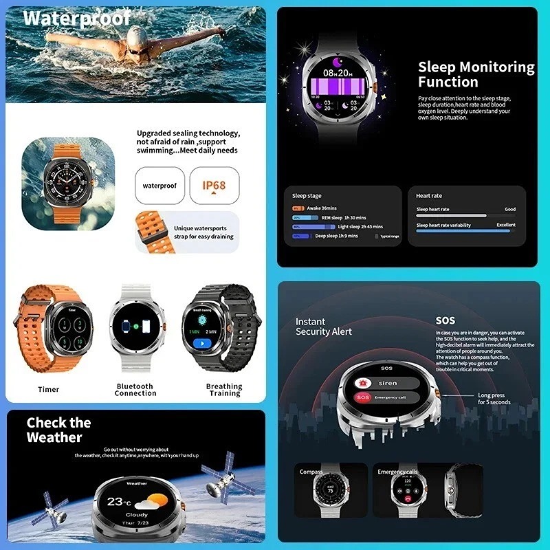 This brand new Ultra-7 Smart Watch is a waterproof fitness and health tracker designed to support your active lifestyle. It features a large, easy-to-read touch screen and helps monitor your daily health stats including heart rate, sleep tracking, steps, and calories burned. The watch also supports multiple sports modes such as walking, running, and cycling, and keeps you connected with call and message notifications directly on your wrist. The comfortable design makes it suitable for all-day wear, whether at work, during workouts, or while resting. Compatible with both Android and iOS smartphones, this smart watch also offers customizable watch faces and long battery life.