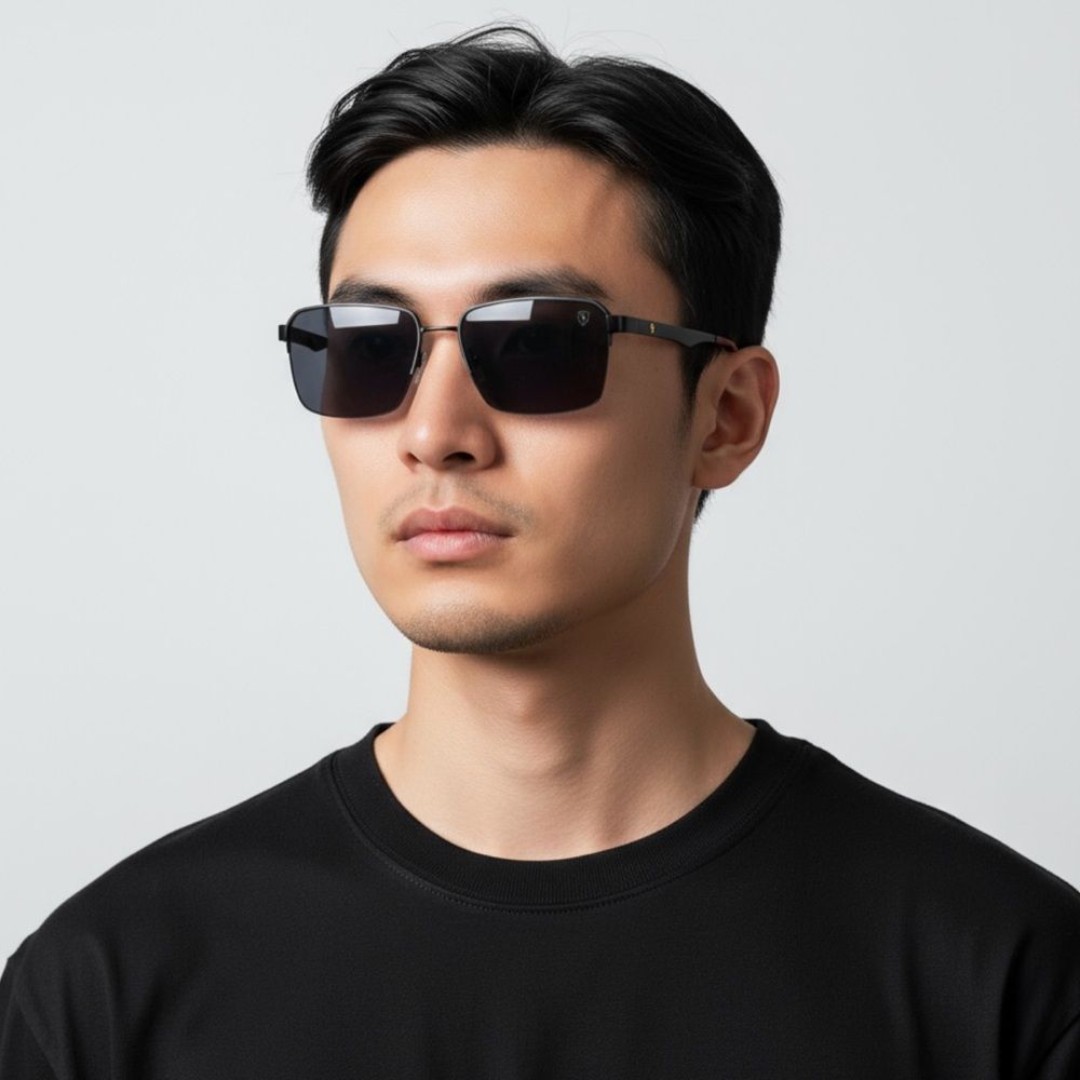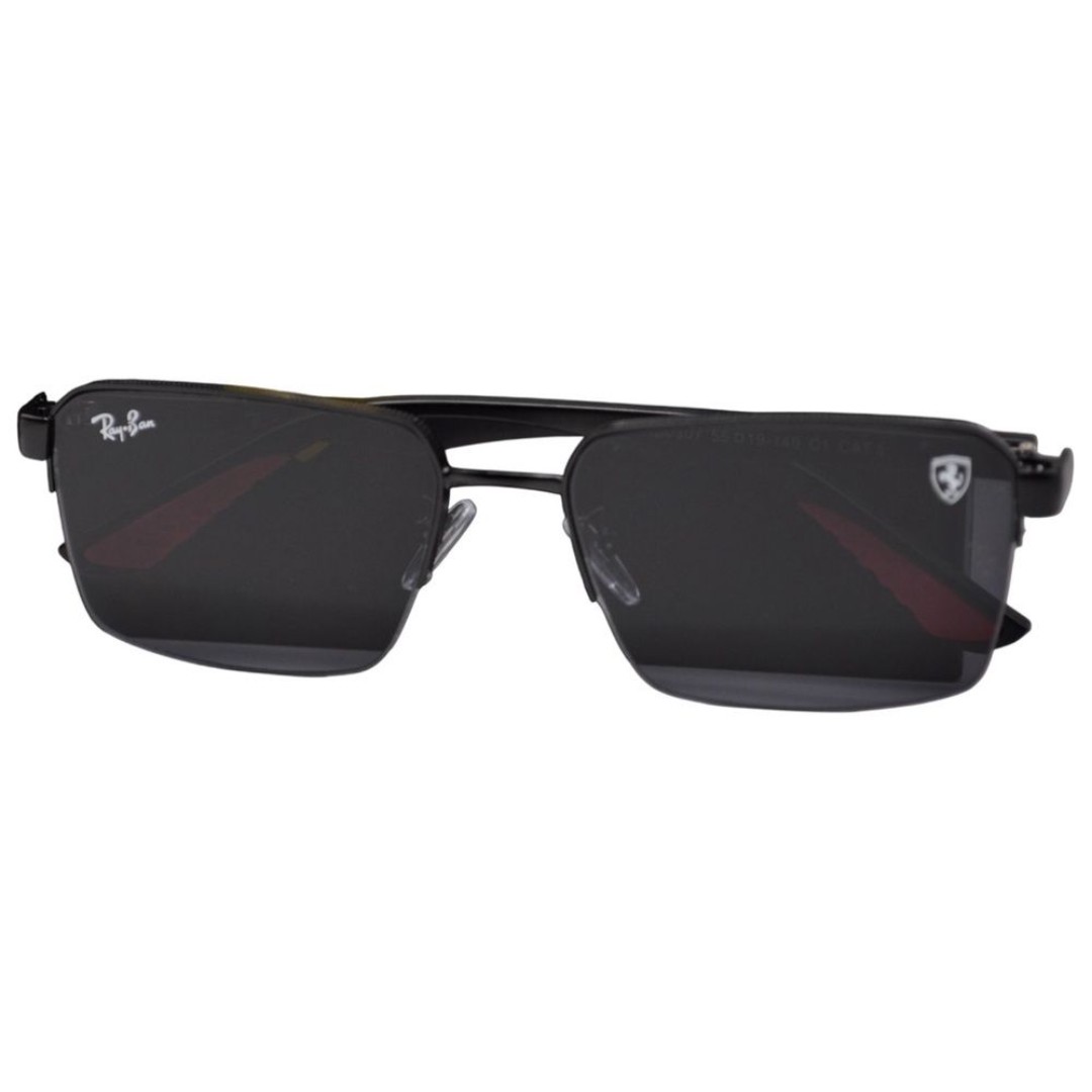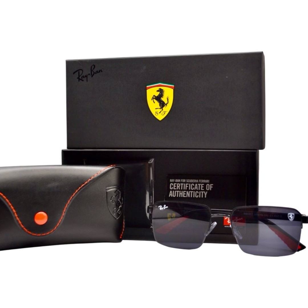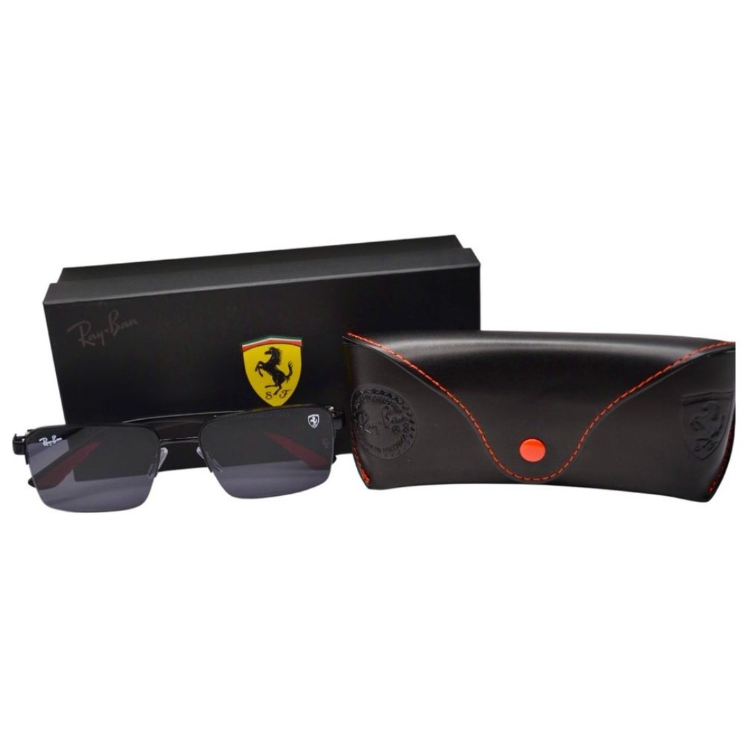 Ray-Ban RB0307 sunglasses feature a sleek semi-rimless black frame with red temple tips and gray lenses. Lightweight, stylish, and made in Italy for everyday comfort.
