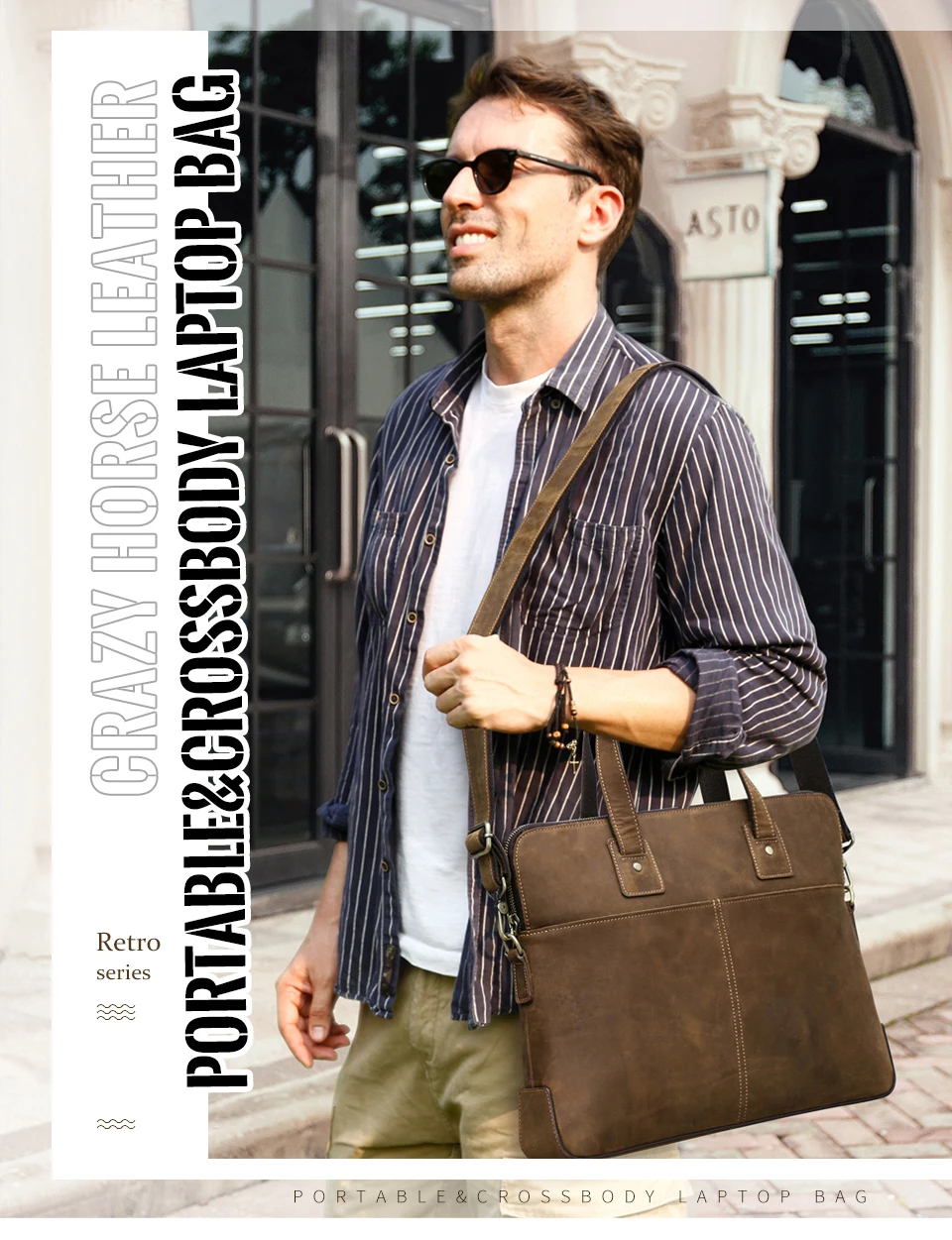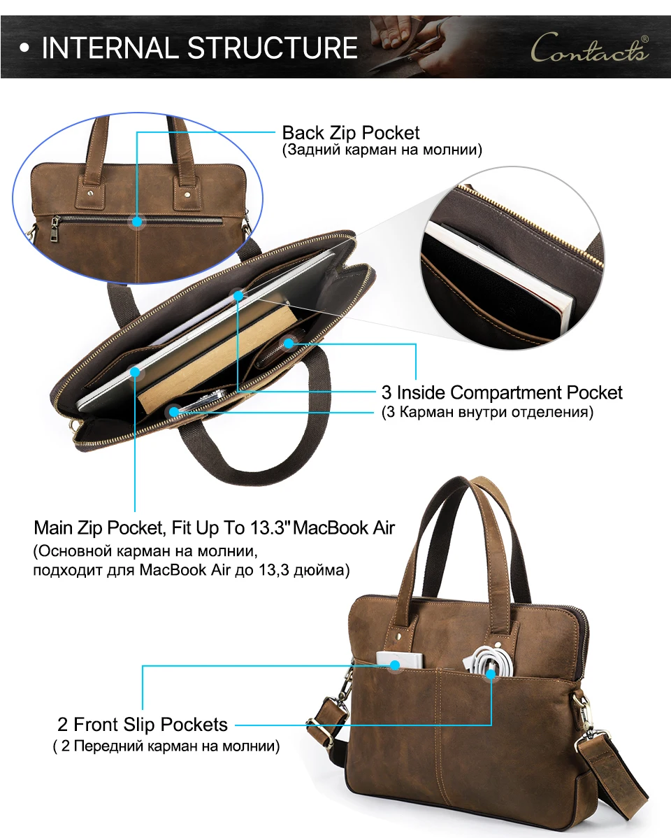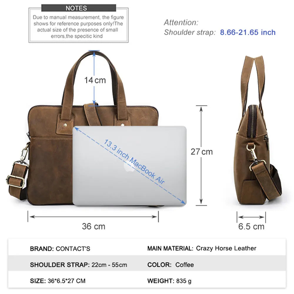Vintage Cowhide Leather Briefcase Laptop Case for Macbook Air M1 M2 13 Pro 15 16 Inch Shoulder Crossbody Bag Fashion Leisure Bag